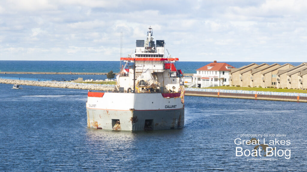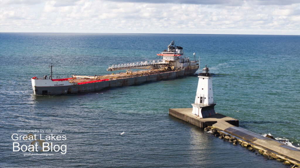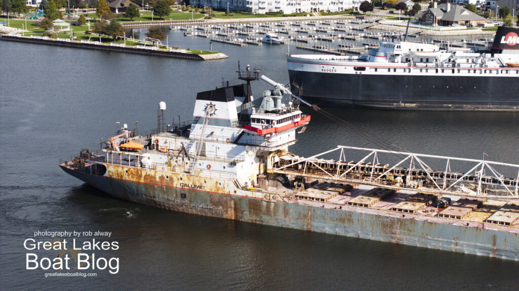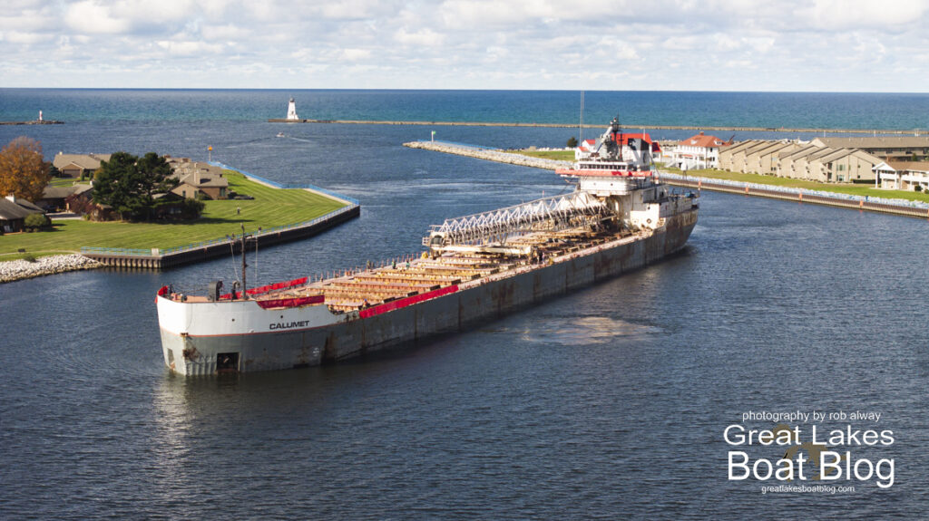 LUDINGTON — The M.V. Calumet was the freighter to visit Ludington in as many days when it arrived about 12:30 p.m. Friday, Oct. 24. Thursday evening, the Calumet’s fleet mate, M.V. Manitoulin arrived. Both vessels were delivering to the Rieth-Riley Construction Dock along Pere Marquette Lake.
