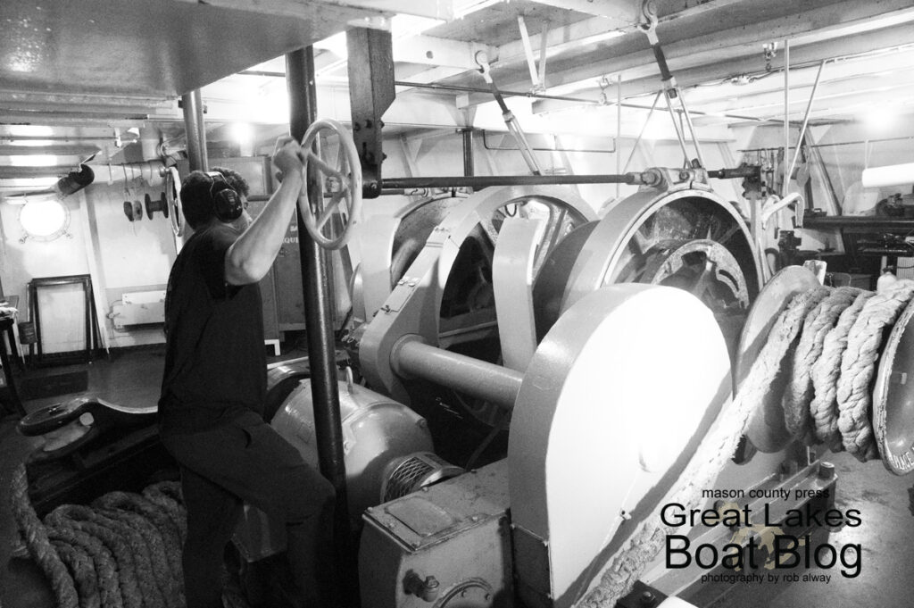 Max typically steers the boat every shift, typically relieving the on-duty wheelsman when he takes a break. Those duties often include wheeling her in and out of port as well.